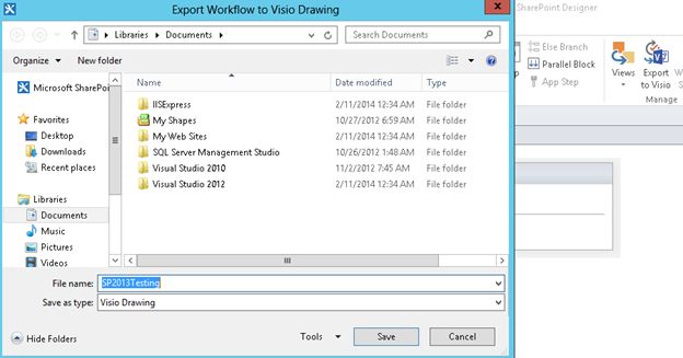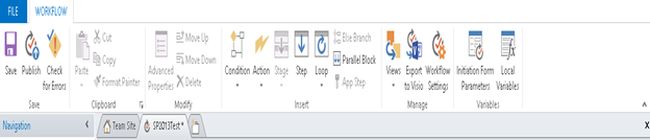 - Then we have the manage tab that contains Views, an Export to Visio and Workflow Settings.