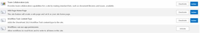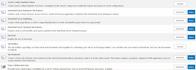 Manage Site featuresThe first link is Manage Site features, since we can see all the site features in the following screen shots.