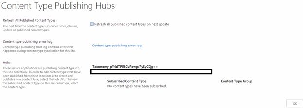Then we have Content Type publishing hubs where we can see we have Refresh All Published Content Types where we have an option to refresh all the updated Content Types at the site collection level.