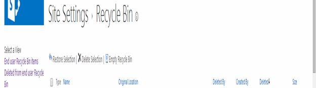 Recycle BinHere we have the Recycle Bin with a new added feature showing the view as per the End User Recycle Bin items and deleted from the end user Recycle Bin.