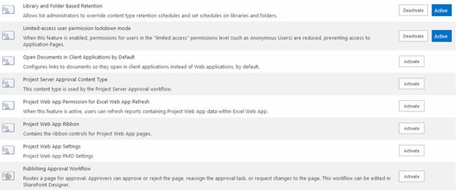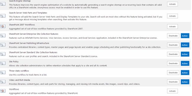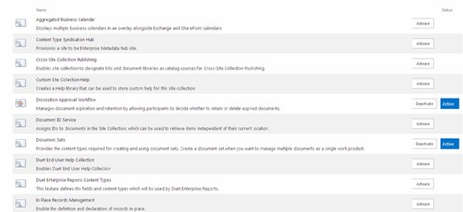 Site Collection FeaturesThe following are the Site Collection features, It contains the default features and custom features (created by developers).