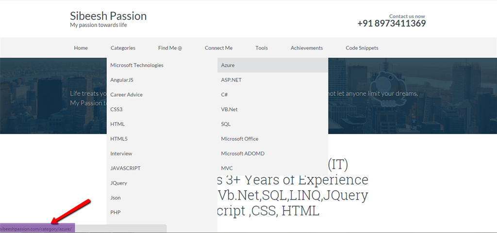 sibeeshvenu.azurewebsites.net. We can change this and point to our CNAME by some procedure that we will explain in our next article. So what will happen is, when you go for the preceding URL, it will just redirect to our CNAME (