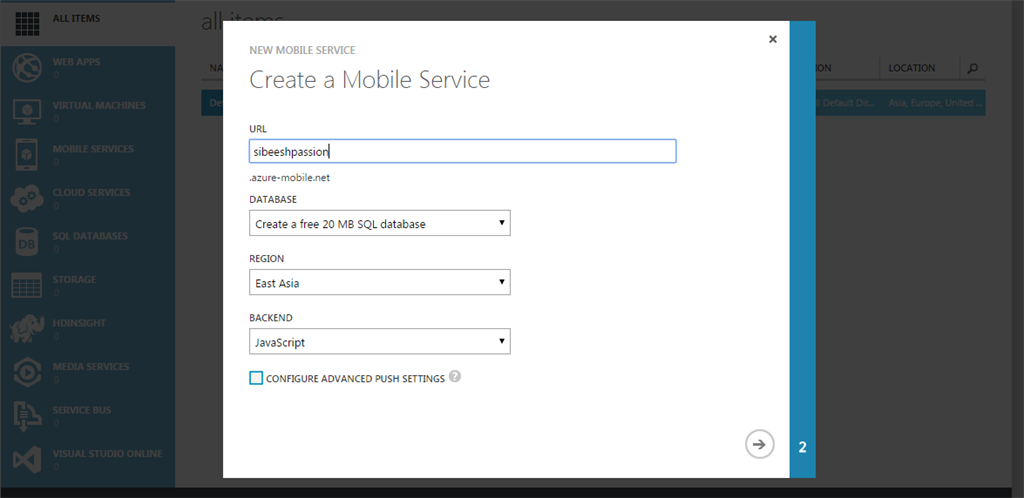Hi all. I hope you all are fine. Today we will learn how to configure a mobile service in Microsoft Azure. I know you might have tried Azure, however I am new to Azure. And I thought there would be some people like me. ;) If you have a good knowledge of Azure then please share your knowledge, so that I can also be like you.