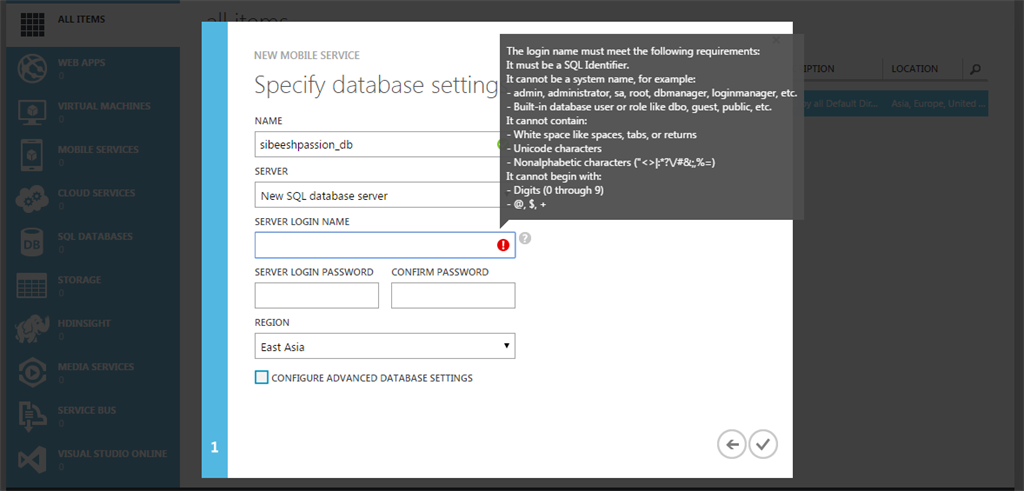 We will configure the mobile service in a step-by-step manner. I will share the screenshots here.