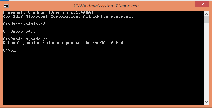 I typed the content as “console.log(‘Sibeesh passion welcomes you to the world of Node’);”.