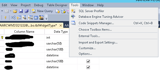 Now go to the Designers menu and click on “Table and Database designers”.