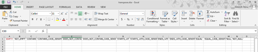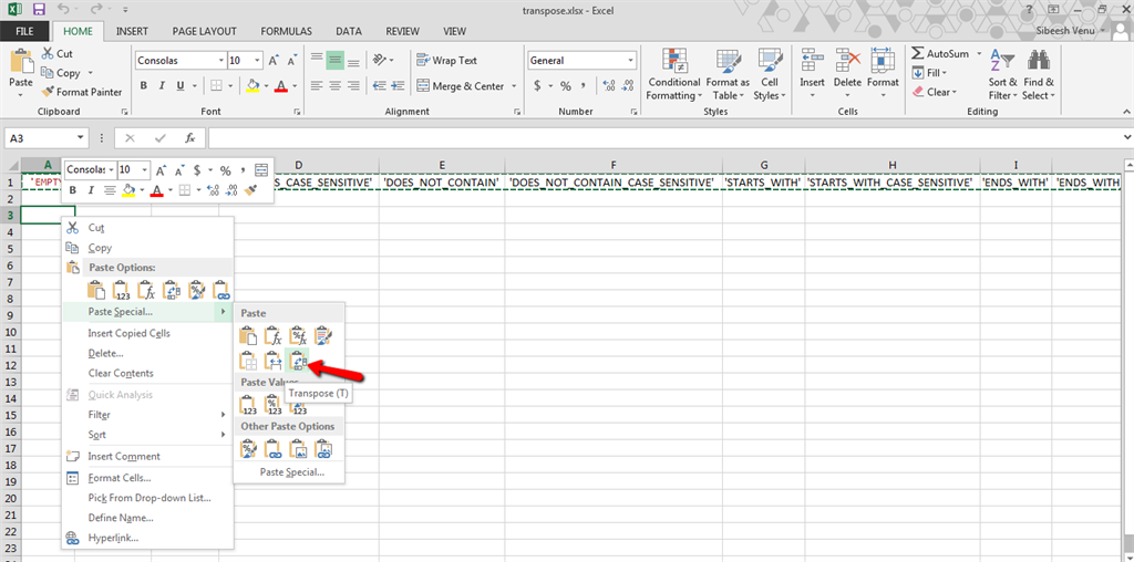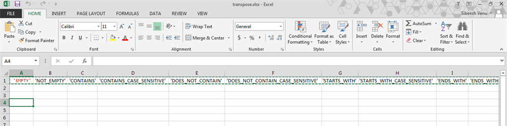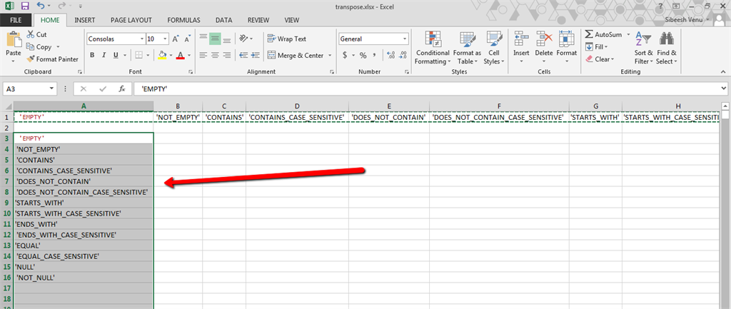Today when I was just analysing my grid data in Office, I just copied some of the conditions in the grid. Since all of the values were in a row, it was not very readable. So I thought of changing the values to columns. And I did. Hereby I am sharing it with you.