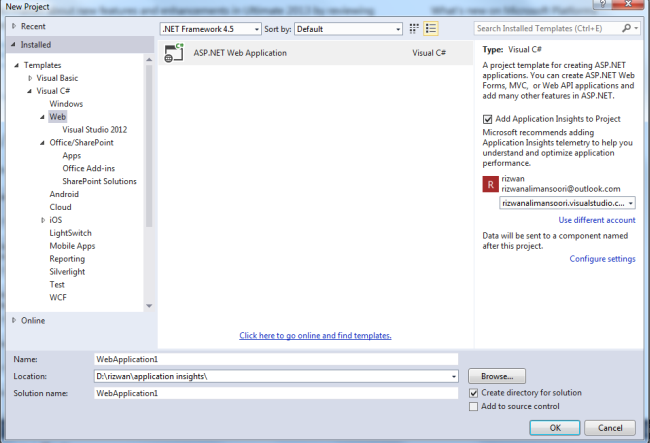 Application Insights is a very important tool by which we can check the performance of our applications. Application Insights is basically a cloud based technology through which we can determine what users do with our application. Using Application Insights we can find many types of information related to our application like how many users there are, how long a specific user uses our application, in which environment they run our application, what mistakes they create during the use of the application and much more information regarding our application. Application Insights is a Microsoft cloud based technology. It is easy to add Application Insights to your web project. Application Insights increases the performance of your application. if you use Visual Studio 2015 then please note one thing that the Visual Studio 2015 Preview is only compatible with Application Insights tools 2.0 and its later versions.