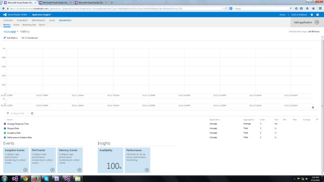 When your application is running on the server and you open the application portal from options then by default in the browser and you go to the Visual Studio online/Application Insights portal then this page has many options for monitoring your entire application.page as in the following: