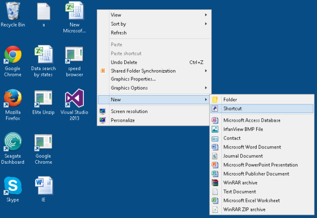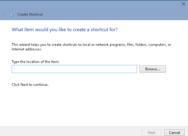 Go the the desktop windows, right-click anywhere on the screen, go the the new and create the shortcut as in the following picture.