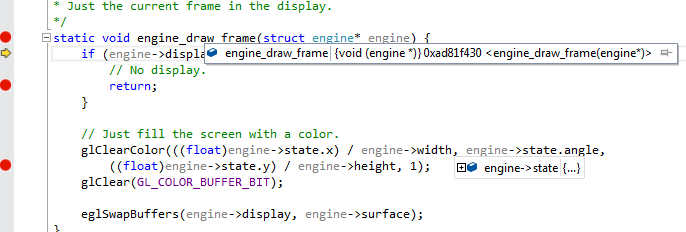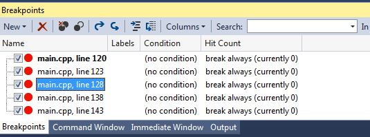 We insert some breakpoints in this code to debug this application. In this file we also write our code in C++.