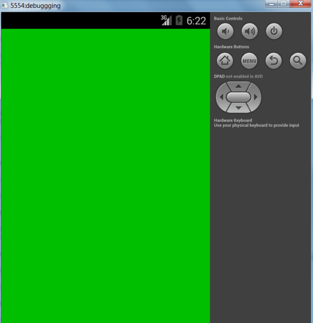 Now go to the menu bar and click on continue, so you see your application in the emulator like this.