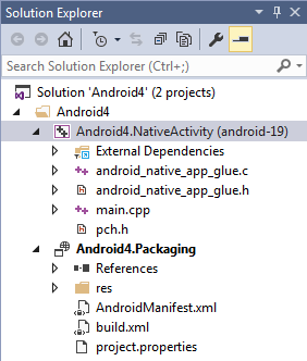 The first one is for Android 4. Native Activity Android 19 ) that contains the four files and folders.