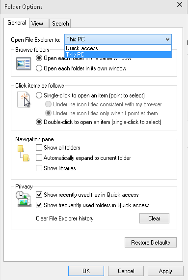 Windows 10 is coming on 29th July 2015. There are many new features introduced in Windows 10. The User Interface of Windows 10 is new. In Windows 10 the Start menu returns. When people use any new Operating System they encounter some general problems with the new operating system, but as time passes they easily operate the new operating system. This article explains the quick access features in Windows 10.Whenever we open the file explorer in Windows 10 then with it Quick Access is also opened. You will find this Quick Access in the left hand side of your Windows screen. The Quick Access has the shortcut of your favorite folders and files and it shows the recently opened programs. In Windows 10 there are many features in Quick Access. If you want to add a folder to Quick Access that you use regularly then simply drag and drop it into Quick Access. Another method is to right-click on the folder and click on the Pin to Quick Access to add the folder to Quick Access. So here I will explain how to remove Quick Access in Windows 10.Step 1Before doing this task, the first thing to do is to make some changes in the Folder option Properties. As I said here, go to the File Explorer. There you will see the view option. After clicking on the view you have the option icon and in this icon you have the Folder Option.Figure 1: Option ViewNow when you click on the change Folder and Search Option then there will be a new window opened. In this window you will see a tab named General. Click on the General tab. When you click on it you will see a drop down list. In this drop down list you have two options, one is Quick Access and the other is This PC. Choose This PC and click on the OK button. Figure 2: Folder optionStep 2Now here I will provide full control for the local Admin for using the Shell folder, by which we can modify the registery key. So please follow the given procedure.Step 3Press the Windows + R keys to open the run command in Administrator mode. When you press it you will get a window like this.Figure 3: Run CommandStep 4Now in this Run prompt please enter regedit and press the Enter key.Step 5When you press the Enter key a new window will be opened named Registry editor. It looks as in the following:Figure 4: Registry Editor Window.Now in the Registry Window go to the path HKEY_CLASSES_ROOT\CLSID{679f85cb-0220-4080-b29b-5540cc05aab6}When you go to that path then here you have a folder and under this path is ShellFolder as in the following:Figure 5: Shell FolderStep 6Now we need to change the permission settings of the ShellFolder, so right-click on the ShellFolder. Here you have the Permission tab and under that you have the Advanced tab as in the following:Figure 6: Permissions for Shell FolderStep 7Now click on the Advanced Tab. Then you have a new window named Advanced Security Settings For ShellFolder. Here you will see a link named Owner. On the front of owner you will see a change link as in the following:Figure 7: Advanced Security Settings for Shell FolderNow when you click on this change link then you will see a window as in the following:Figure 8: Shell Folder SettingsIn this picture you will see the Advanced button. Click on the Advanced button. Now again you will see a new window.Figure 9: Select UsersIn this select Users Window then you will see a Find Now button. When you click on the Find Now button then all the users that are available in the domain will be visible for you. Now you can choose the user that you want. As I show in the following picture.Figure 10: Selected UsersAfter choosing the user as Administrator, click on the Apply button then OK.Step 8In the ShellFolder we will see a file named attributes. Just double-click on it and a new window appears. Now change its value a0100000 to a0600000. Finally click on the OK button.Figure 11: Change Attribute ValueStep 9Now simply restart your computer or laptop. Here you will see that your Quick Access View is disabled. Here one thing is noticeable, that sometimes when changing the Windows Registry problems occur. So before making changes to the Windows Registry please take a backup of your system. If you want to use Quick Access again then simply change the value of attributes from a0600000 to a0100000.I hope this article will be helpful for the reader to disable the Quick Access in the Windows 10.