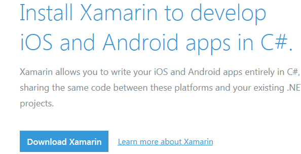 When you click on the OK button you will get a screen to download Xamarin. Click on the download button.