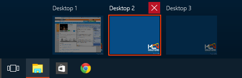 If you want to close a Virtual Desktop then just click on the Task view. Here all the desktops are available. So just click your mouse at that Virtual Desktop that you want to close. When your cursor goes there then you will see a cross icon. Just click on that. Then your specific Virtual Desktop will be closed.