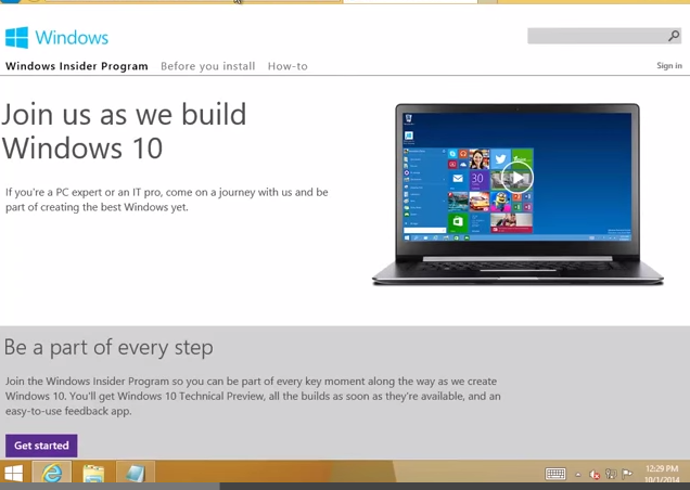 The first step is to download Windows 10 from the link Windows 10 Setup. When you click on this link you will see a window with an option to get started as in the following picture.