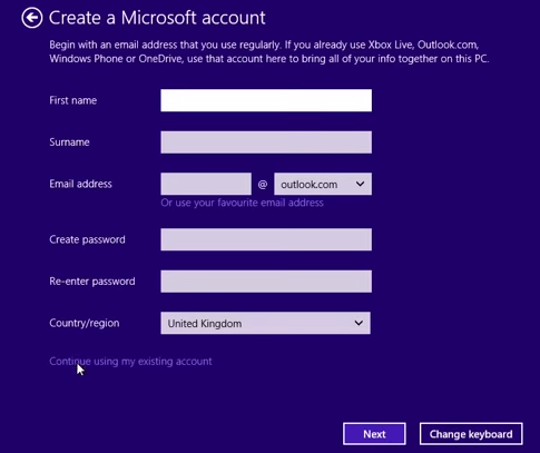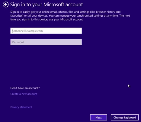 After clicking on the use express settings we will see a window that asks for a Microsoft account. Here you have the option to use an old account or you can create a new account. Here I go with my old Microsoft account.