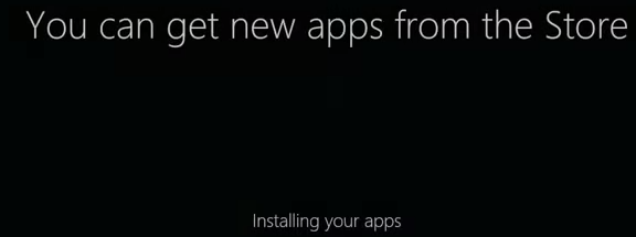 Now nearly everyting is done. After this your system will be restarted and you will see a window like this automatically. This window changes its color many times during the process. Here some apps are installed automatically that are available with Windows 10.