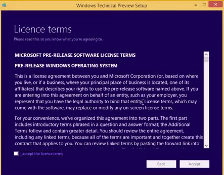 This preparing window will run from one percent to a hundred percent, it requires some time to complete. You will have a new window, that window is the license window, here are some rules and regulations related to Windows 10, simply click on the I accept the license term and click on the accept button, the window look like this: