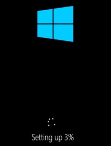 When this installation goes to one hundred percent, your system will be restarted and then you will have new window with a Windows icon that will sho the setting up percentage, this percentage is also running from one to one hundred percent, this new window looks as in the following picture.