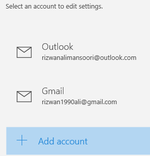 Now when you click on the first option for accounts you will have that account from which you login. Here you also have the option to add another account. Just click on the Add account. When you click on the Add account option you wil have a window like this.