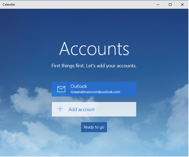 Here I go with with my Microsoft account. When I click on the Ready to go button then we get a new window, just as in the following picture.