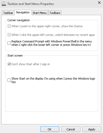 Here you have seen the four windows in the Navigation process. These windows are running currently in your system. Windows 10 improved the Aero snap behavior that is found in Windows 7. Windows 10 provided a good thing here, you can snap a window into one side, where it consumes half of the screen. For this, enable navigation in your window. Just right-click on the tour task bar, click on the properties, here in the tabs you have the Navigation option, just check the corner navigation checkbox.