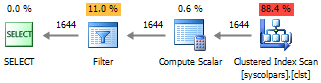 Accordingly, the execution plan will look not so optimistic, as before. Note that the column list is even read out 3 times: