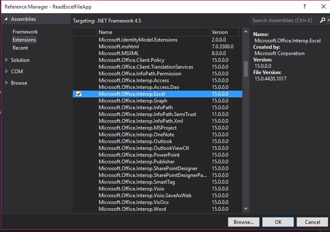 - Select .NET tab then choose Microsoft.Office.Interop.Excel.