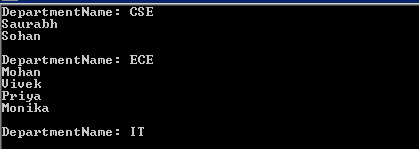 Now, what we want is to list all the departments and students within them. Here is the LINQ query for this: