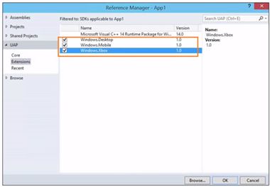 For example, you can see the Reference Manager under UAP -> Extensions. You can find the applicable SDKs as follows (by default).