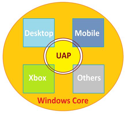 Using the preceding SDKs you can code your app like to access a specific external device related to a specific targeted device. Such external device, like a Scanner, Remote Control, Hardware Button and so on. So creating a Universal Windows Platform using the Extension SDKs, you can run the app in the desktop with the desktop related APIs and you can also play the app in Xbox by accessing all the required controls in the device. Similarly you can get and access all the internal hardware control that is present in the Phone. Well the following image can convey to you better about the UWP extension SDKs.