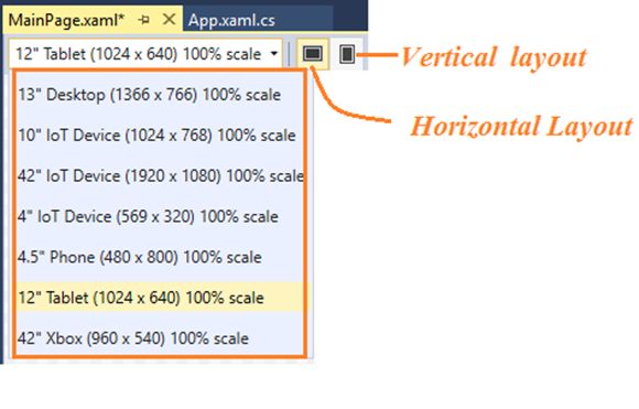 - In the designer, you can switch to one of multiple views depending on the Windows device layout to check the current design in both horizontal and vertical orientation