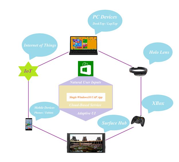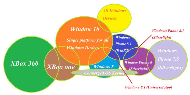 Currently Windows 10 is targeted to the Unified Core and an app platform that allows the app to run on all Windows devices. Here the picture clearly explains the evolution to Windows 10.