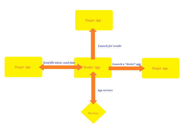 Used to send a file token or data to another app. Here the file that is about to send can convert the token with a value set and can send to a target app with Launcher URI and options with PackageFamilyName.