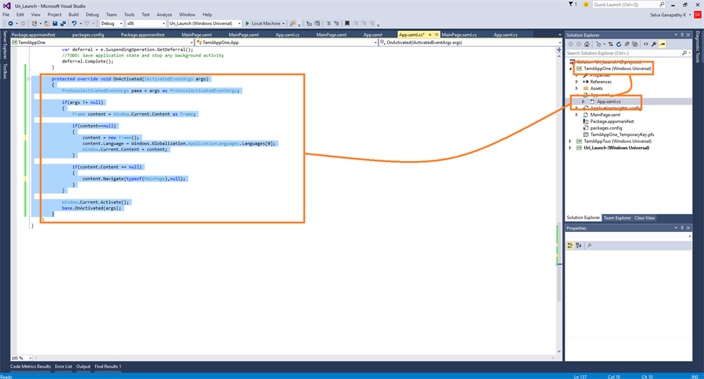 - Launcher.LaunchUriAsync( new Uri(“tamilapp:?ID=asrw6”));