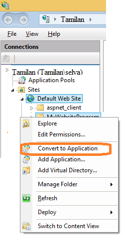 - Also you can use it and follow the same procedure in the Default Web Site or else you can use inetpub to launch the web application. In other words, you can simply move your application folder in “C:\inetpub\wwwroot” and it will be added under your Default Web Site as in the following, if this is not present then just right-click on Default Web Site and click the Refresh menu.