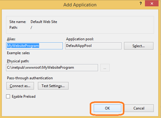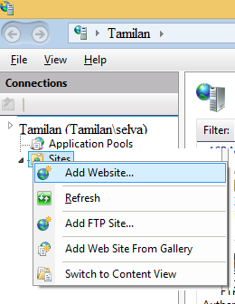 By default IIS provides a default named “Default Web Site” to launch your site. You can use this or else create a new one.
