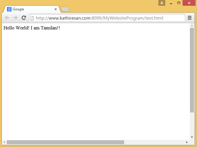 - Create a simple web application to launch (for example, in HTML) using the following code in Notepad and save it as “test.html” in any location on the physical path, for example F:\MyWebsiteProgram. Now the web application is ready.