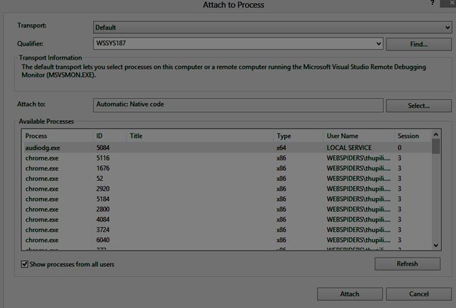- Click on Attach to Process.