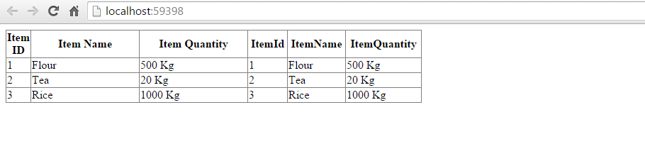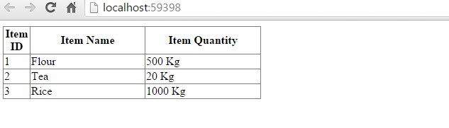- dt.Rows.Add(3, "Rice", "1000 Kg");