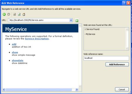 - Again click the "Add Web Reference" button. Again a new window will be