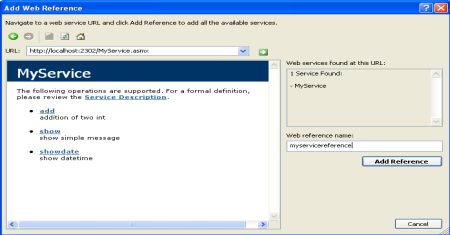 - Click Add Service Reference. A new window will be open.