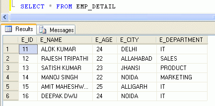 INSERT INTO EMP_DETAIL VALUES(11,'ALOK KUMAR',24,'DELHI','IT')