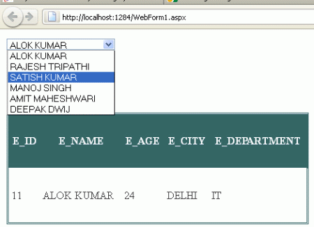 Select another name from the DropDownList. Like I am selecting a name "SATISH KUMAR".