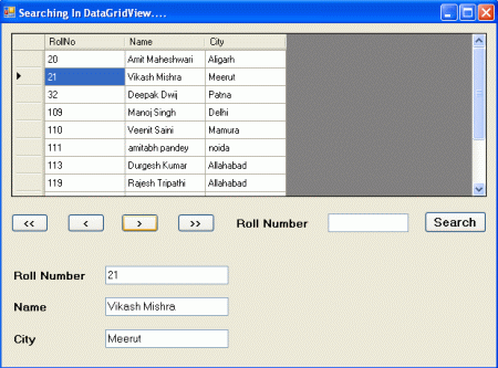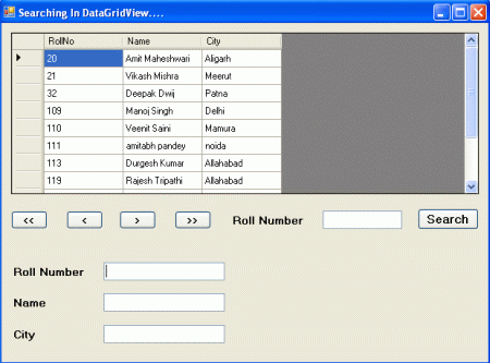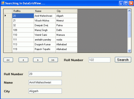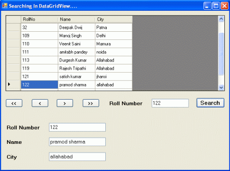 In this article I am displaying a record from a database table in a DataGridView and searching the records in a DataGridView. At first we should have a database with some
