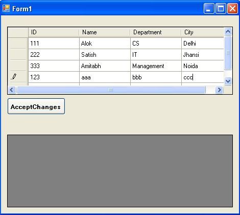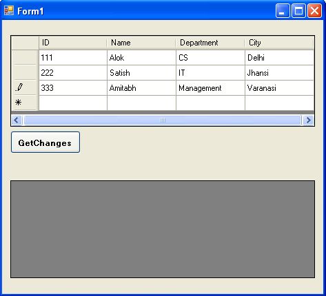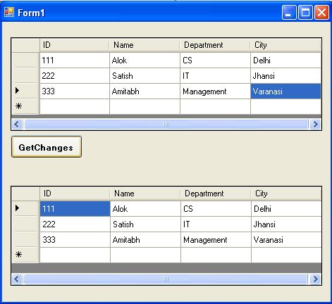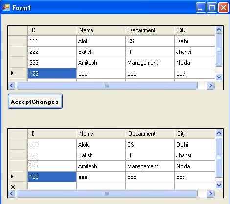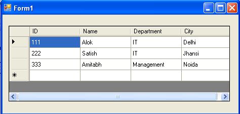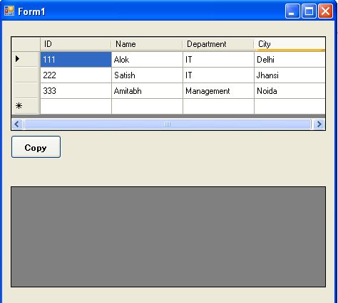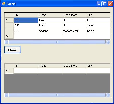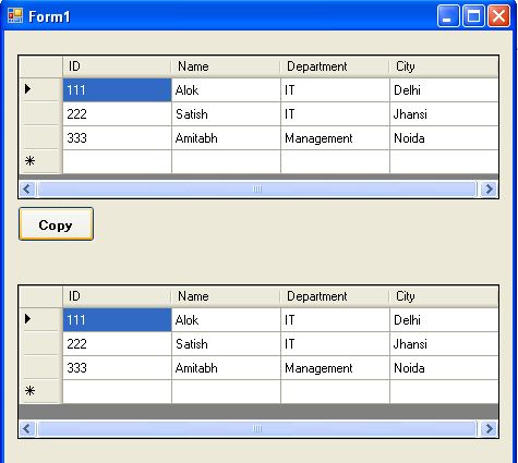 records with structure of Datatable. Take another dataGridView control and a Button. Write the following code on