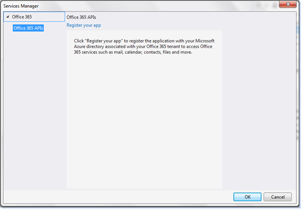 Note: The following is the procedure that gives the brief details of how to add Office 365 to our application. In the future series, I will provide a detailed procedure and we will create a working example. For now assume we have a hello world application that uses an Office 365 service.