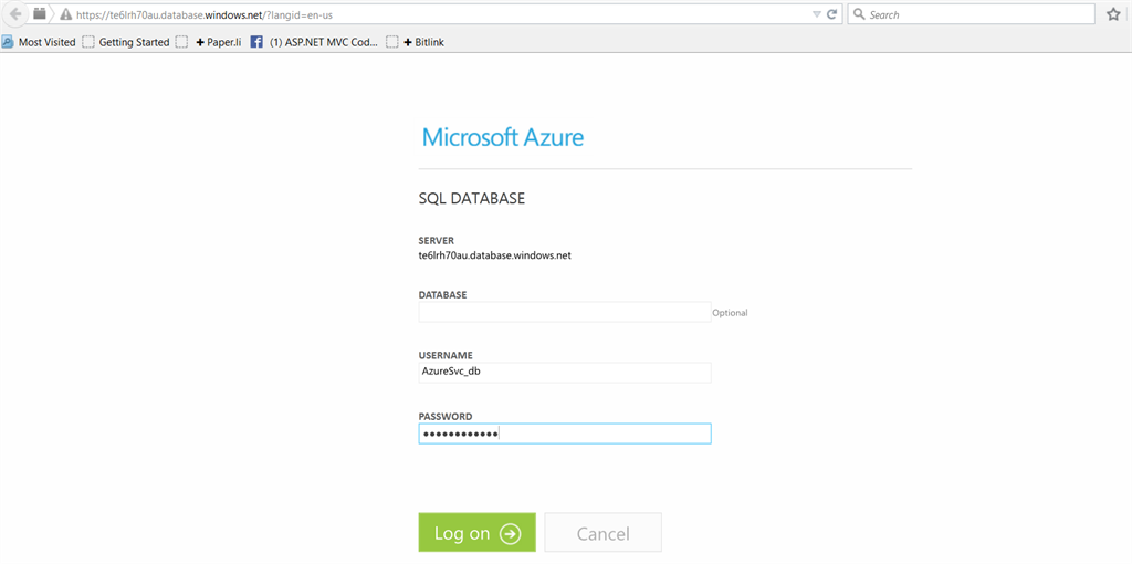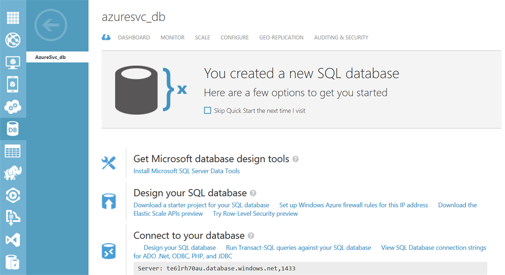 To fix it, you can go back to the Azure Portal and click on Manage Server and include your IP in the trusted IP List.